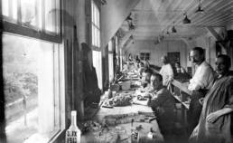 Mittagsgespräch und gemeinsames Blättern in einem ausgewählten Schriftmusterbuch der Holztypenfabrik Roman Scherer. Dazu gibt es einen kleinen Imbiss – aber keine Buchstabensuppe.